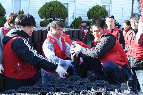 [시사인경제] 백경현 구리시장은 지난 19일 토평동 소재 ‘즐거운 교회’에서 마련한 사랑의 연탄배달 봉사에 참석해 관계자들을 격려하고 100여 명의 신도들과 함께 저소득층에 직접 연탄을 배달하며 구슬땀을 흘렸다.