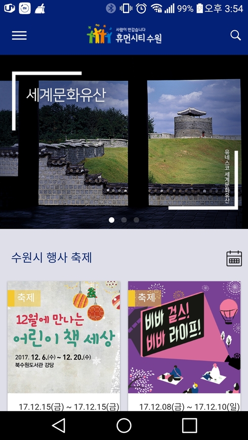 ‘축제·공연’은 화성행궁 상설공연, 수원화성문화제, 수원에서 열리는 이벤트·공연 등 대한 정보를 제공하고, ‘수원 추천 테마코스’는 자전거 생태관광, ‘먹방 투어’ 등 관광객들이 편안하게 즐길 수 있는 관광코스를 알려준다.