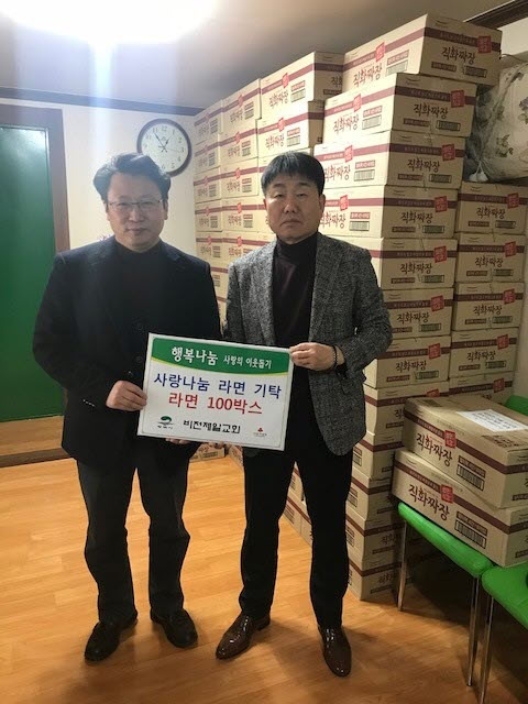 이어 지난 3일에는 경기 평택 비전1동에 소재한 비전제일교회에서 열두번째로 후원, 추운 겨울을 돌봐드리는 가족 없이 외롭게 보내시는 홀몸어르신과 복지사각지대에 놓여있는 어려운 이웃에게 전달해달라며 라면 100박스(350만원 상당)를 비전1동 주민센터에 기탁해 이웃을 돌아보고 따뜻한 관심과 사랑을 나누는 훈훈한 이야기를 이어갔다.