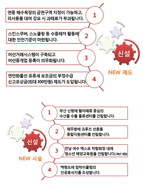 그 외에도 어선거래시스템 구축 및 어선중개업 의무등록제를 실시하여 어선거래를 양성화하고, ④연안화물선 유류세 보조금 부정수급 방지를 위한 신고포상금(최대 300만원) 제도가 새롭게 도입된다.