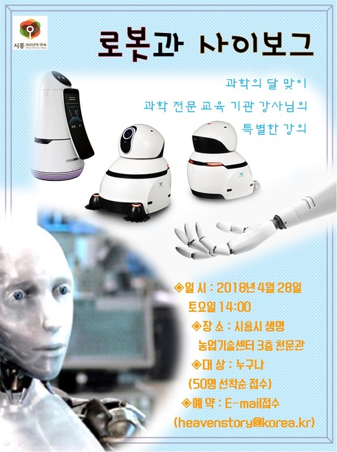 [시사인경제]시흥시 생명농업기술센터 천문관에서는 4월 과학의 달을 맞이해 오는 28일 오후 2시 <로봇과 사이보그>라는 특별한 강의를 준비했다.