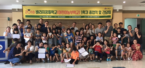 이번 방학식은 상반기 텃밭수업을 마무리 하는 자리로 참여가족과 운영단체인 시흥시생명도시농업협동조합 관계자 60여명이 참석했다.
