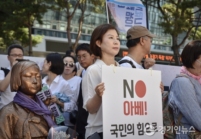 일본의 부당한 경제보복 철회를 촉구하는 경기도의회 차원의 릴레이 1인 시위에 참여한 김 의원은 “치졸하고 불법적인 방법으로 전쟁국가로 나가려는 아베 정부의 무모한 경제보복에 분노를 금할 수 없다”며 ‘국민의 힘으로 일본 경제보복 막아내자’는 피켓을 들고 시위에 나섰다.