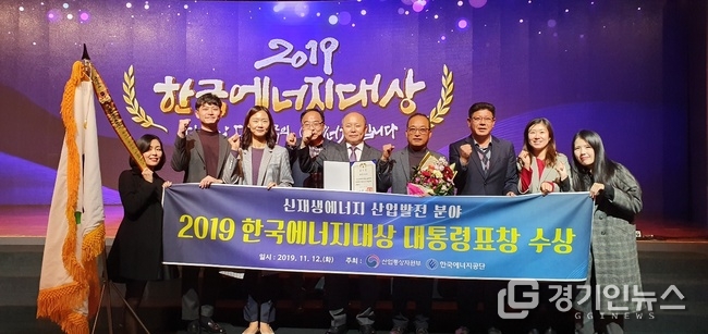 안산시는 12일 여의도 63컨벤션센터에서 산업통상자원부와 한국에너지공단 주최로 열린 ‘2019 한국에너지대상’ 시상식에서 대통령 표창을 수상했다고 밝혔다. (사진=안산시)