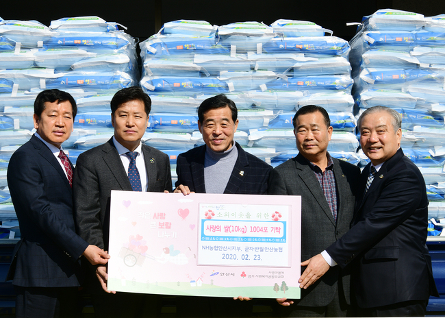안산시는 NH농협 안산시지부와 지역농협조합 군자농협, 반월농협, 안산농협 등이 연합해 코로나19로 어려움을 겪는 지역사회와 소외계층에 전달해 달라며 쌀 10㎏ 1004포를 기탁했다고 23일 밝혔다.