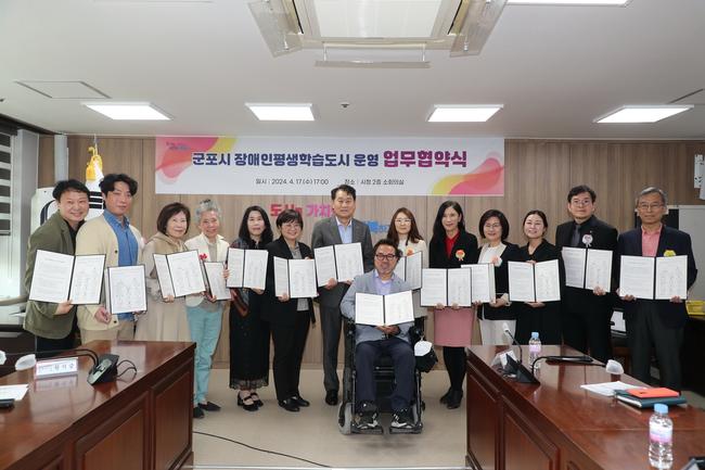 현판식 이후에는 장애인 평생학습도시 사업 참여기관과의 업무협약식도 가졌다. 협약에는 군포문화재단, 군포시매화종합사회복지관, 군포시수어통역센터, 군포시장애인자립생활센터, 군포시장애인종합복지관, 늘푸른주간보호센터, 사)경기도지체장애인협회군포시지회, 사단법인로아트, 산본장애인주간보호시설, 솔복지센터, 솔직업훈련센터, 양지의집, 윙장애인보호작업장, 한세대학교 산학협력단 총 14개 기관이 참여했다.