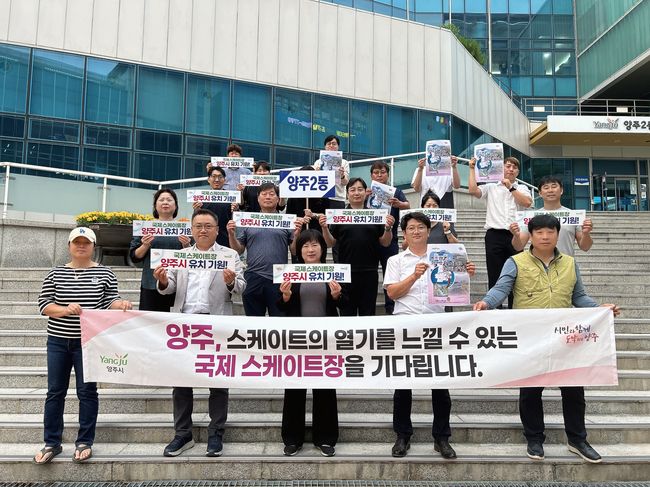 이날 행사 참석자들은 ‘양주, 스케이트의 열기를 느낄 수 있는 국제스케이트장을 기다립니다’라는 슬로건을 담은 현수막과 유치 염원을 담은 피켓을 열렬히 흔들며 응원의 메시지를 전달했다.