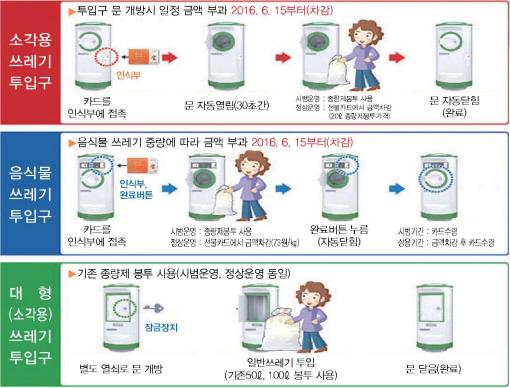 시는 시범운영을 거쳐 오는 6월 15일부터 정상 운영할 계획이다. 시범운영기간에는 음식물과 생활쓰레기를 종전과 같이 종량제봉투를 사용해 자동수거시설에 배출하면 되고, 정상 운영 기간부터는 아파트에서 제공한 선불카드(교통카드 겸용 캐시백 카드)를 이용해 쓰레기를 배출하면 된다.